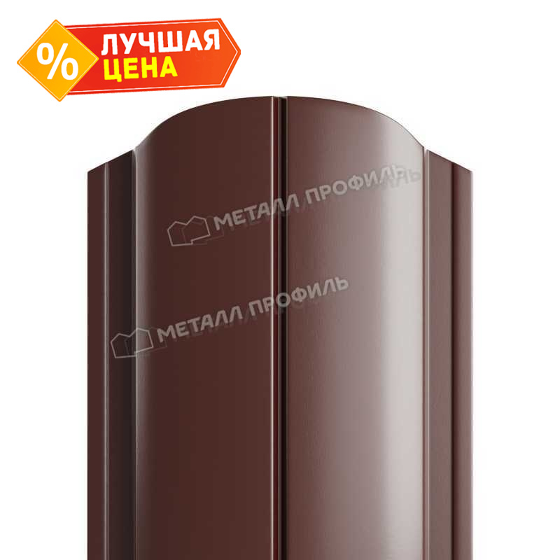 Штакетник Металл Профиль ELLIPSE-O 0,45 Полиэстер RAL 8017/8017 Коричневый шоколад двухсторонний - это высококачественный металлический штакетник, предназначенный для ограждения и декорирования различных объектов. Изготовлен из прочного металла с полимерным покрытием, что обеспечивает ему долговечность и стойкость к внешним воздействиям. Штакетник имеет элегантную эллиптическую форму, которая придает ему особый шарм и привлекательность. Он окрашен в коричневый шоколадный цвет с обеих сторон, что позволяет использовать его как внутри помещений, так и на улице. Штакетник легко монтируется и обладает привлекательным внешним видом, что делает его идеальным выбором для создания стильного и надежного ограждения.